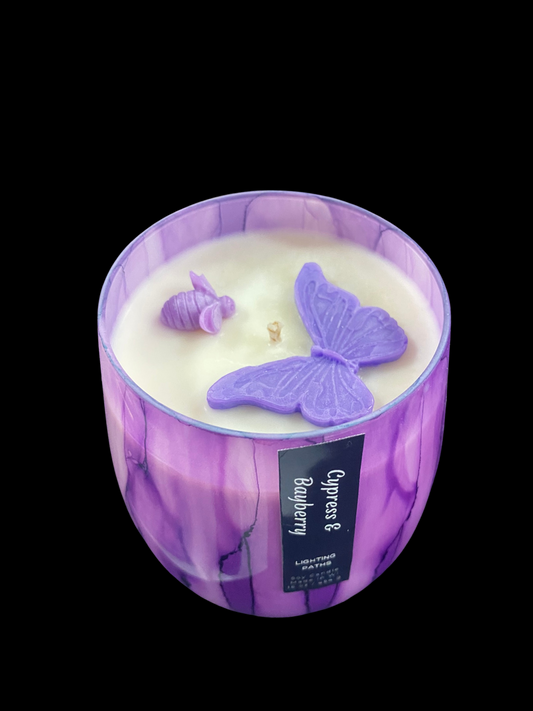 Luxe jar (Purple) ~ 16 oz. soy candle with orchid/butterfly/bee & purple lid / dust cover