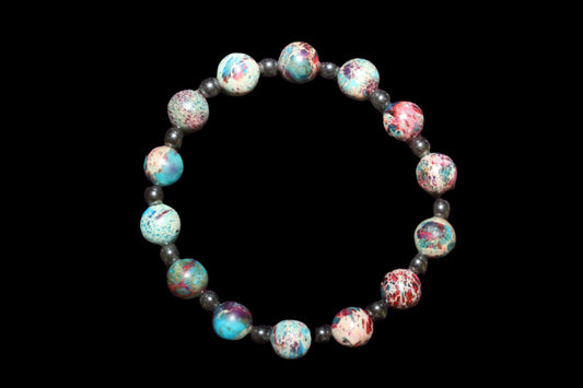 Beaded Bracelet - Blue Imperial Jasper & Hematite