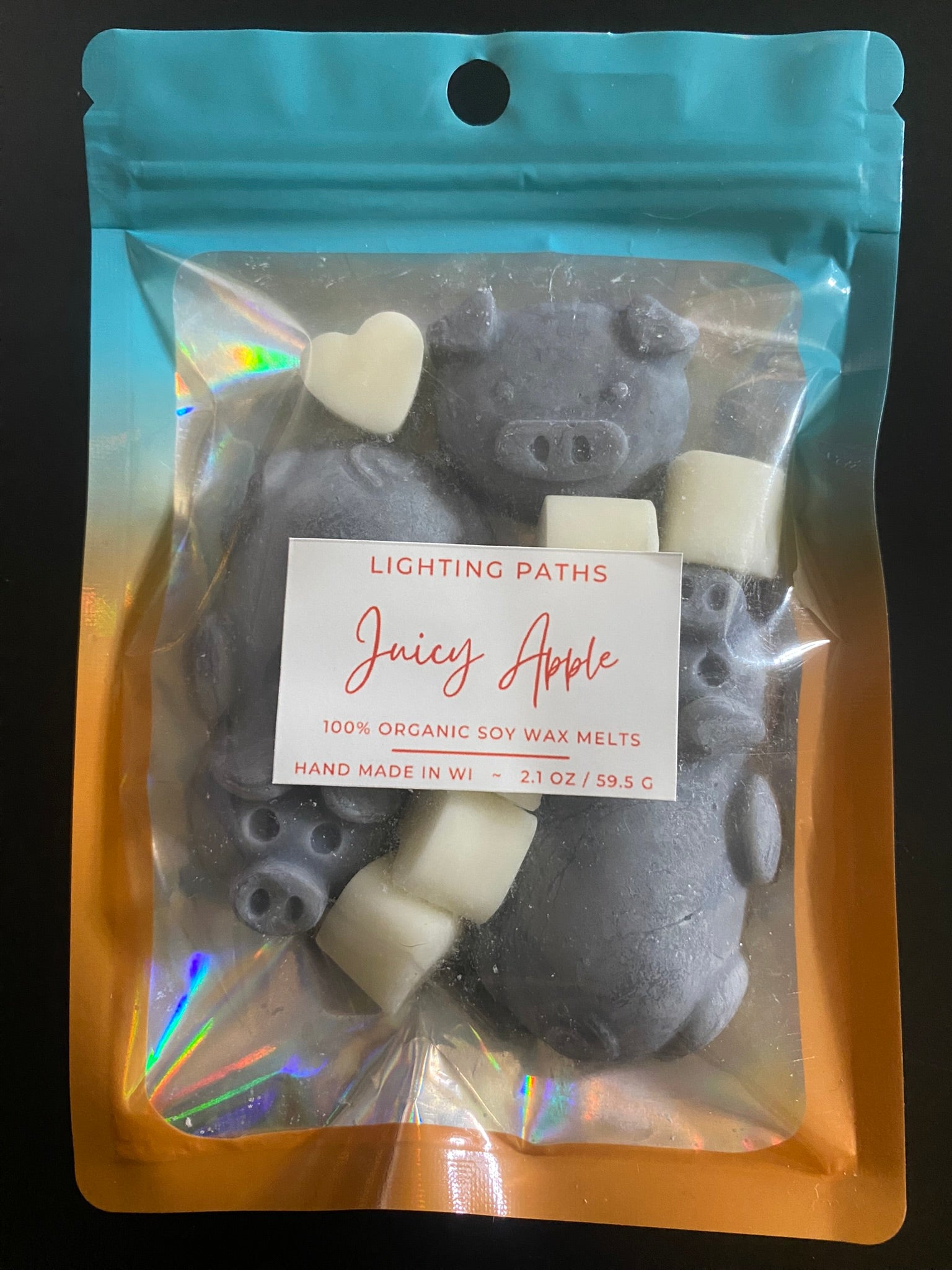 2.1 oz of shapes in a scent-locking ombre-colored bag with an iridescent clear front panel.