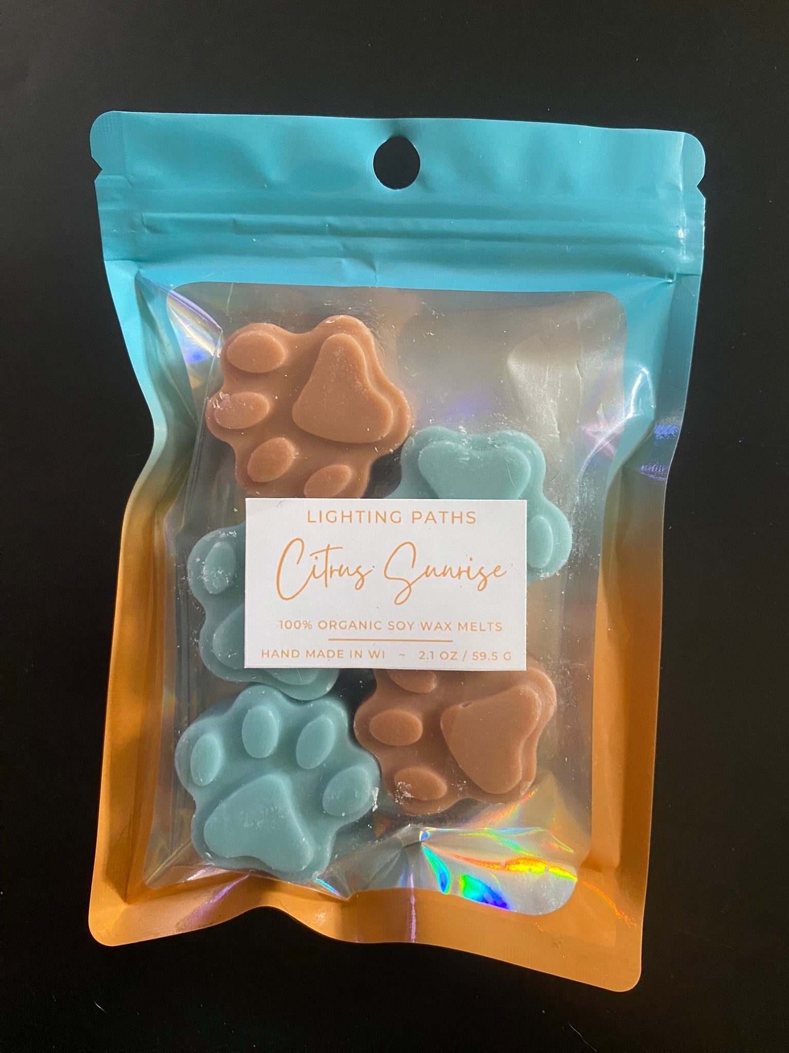 2.1 oz of shapes in a scent-locking ombre-colored bag with an iridescent clear front panel.